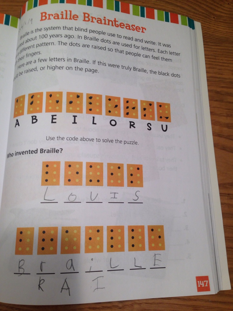 例えば、Who Was Helen Keller?に点字の説明が出てきたので